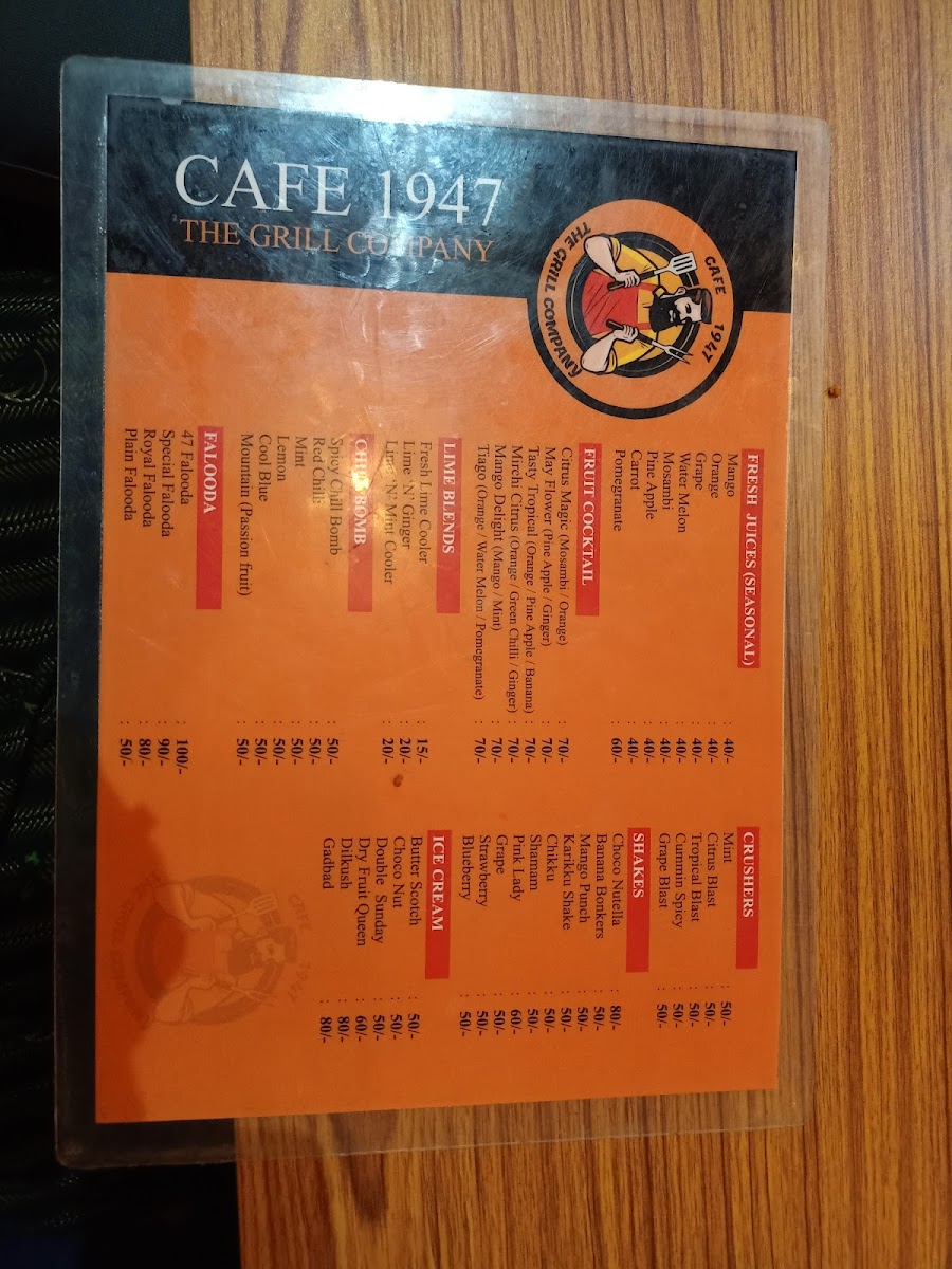 Introducing the Menu of CAFE 1947 - The Grill Company